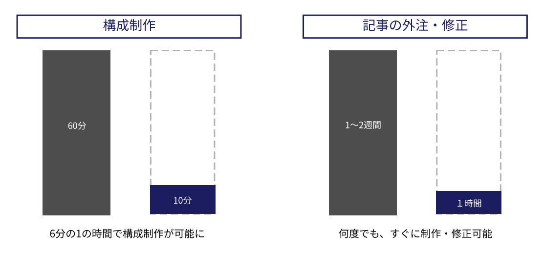 AIによる提案をたたき台としてリライトをすることにより、コンテンツ制作時間を大幅に短縮します。