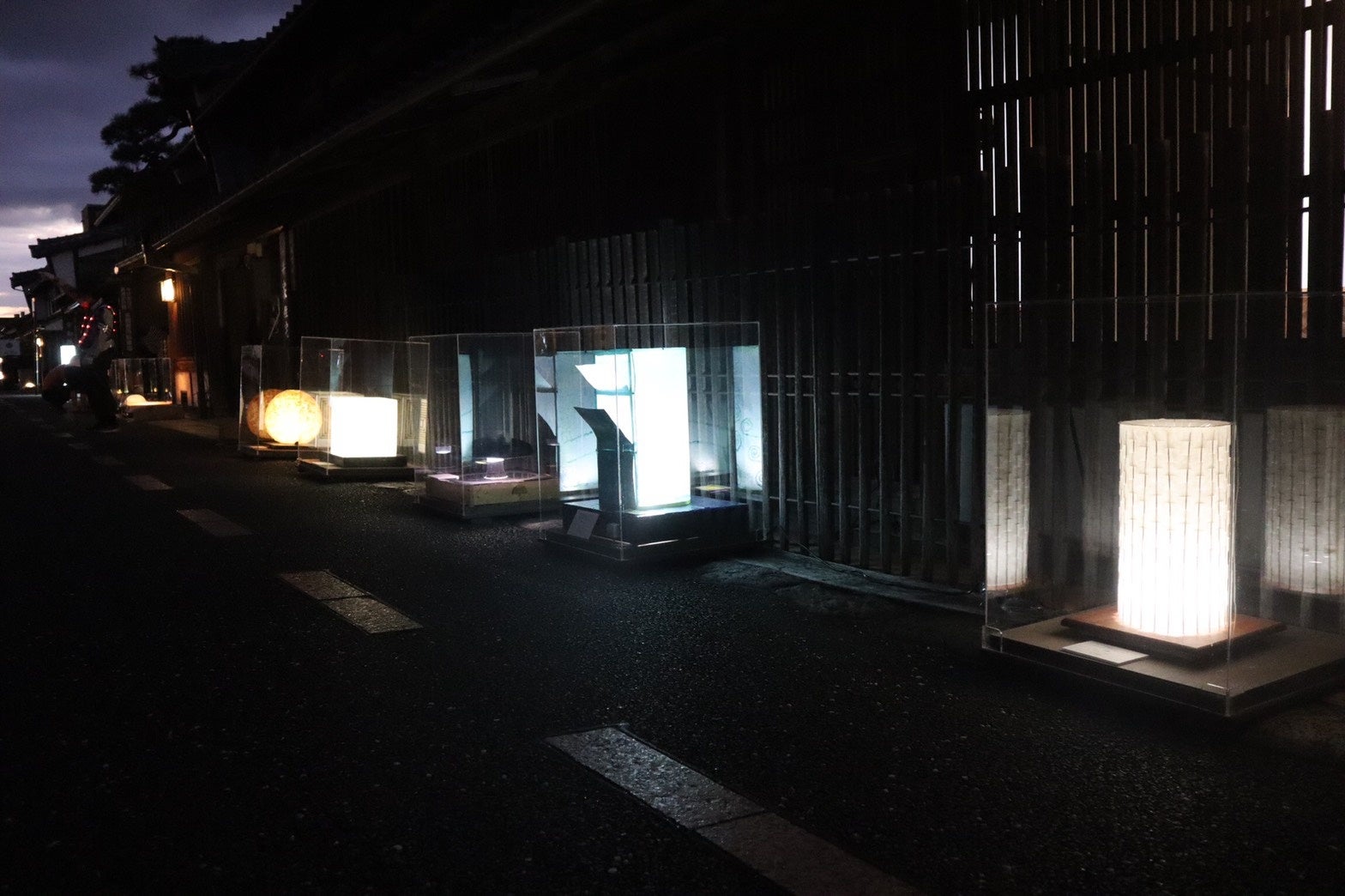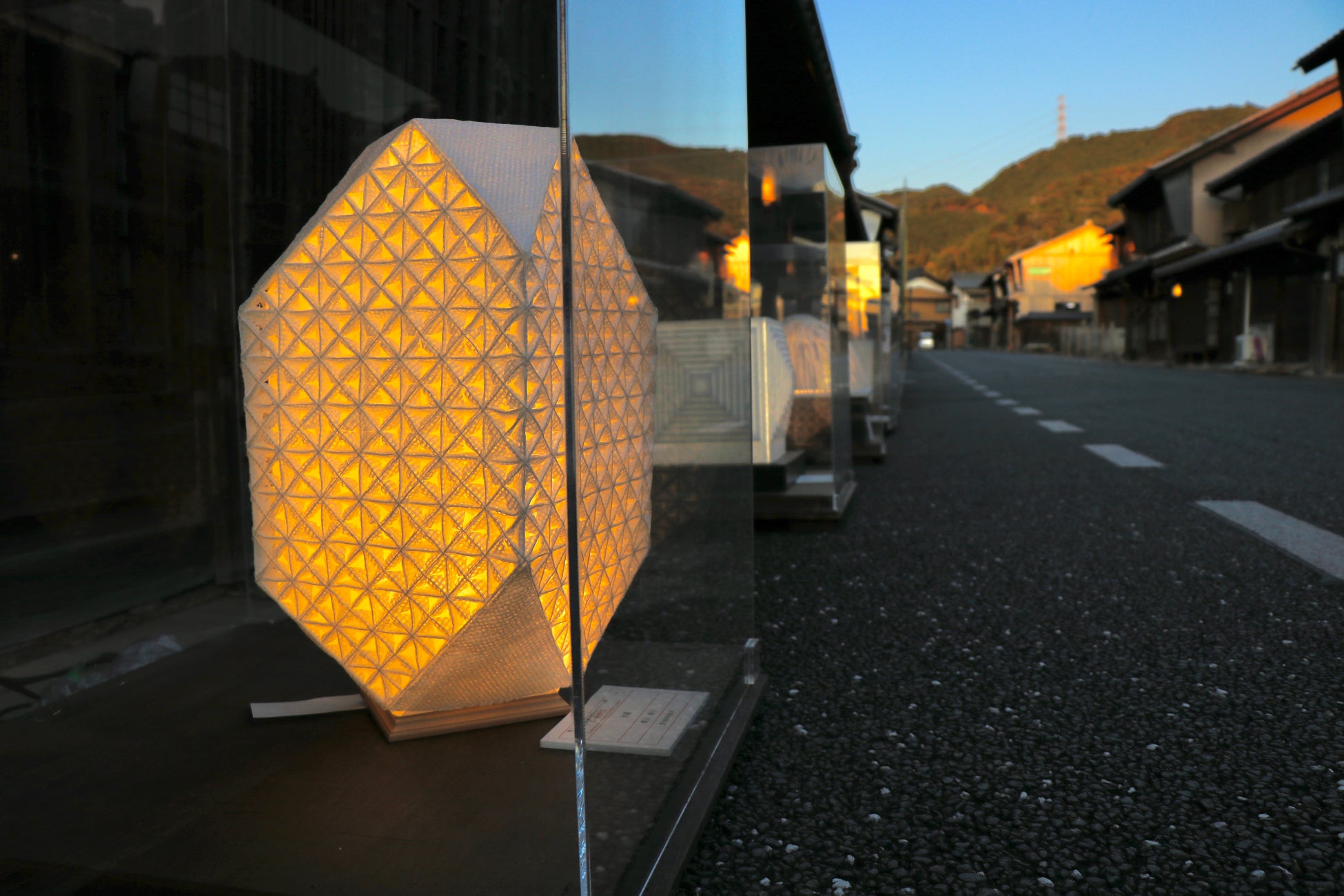 ① 伝統的な町並みに自分で創作した和紙アートを展示できる
