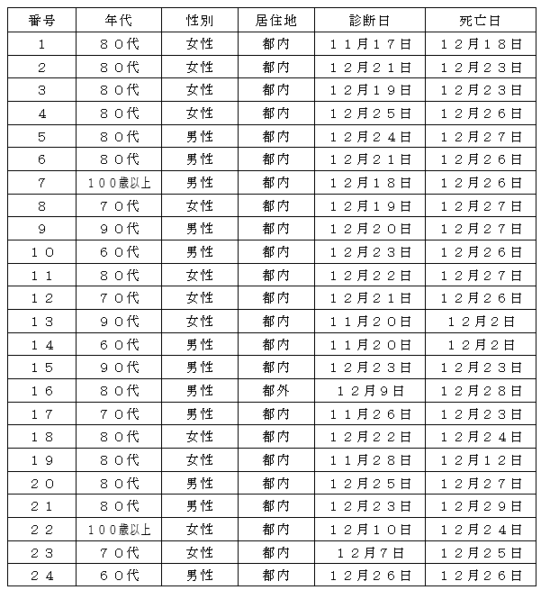 都内で新型コロナウイルスに感染した方が死亡されましたのでお知らせします。