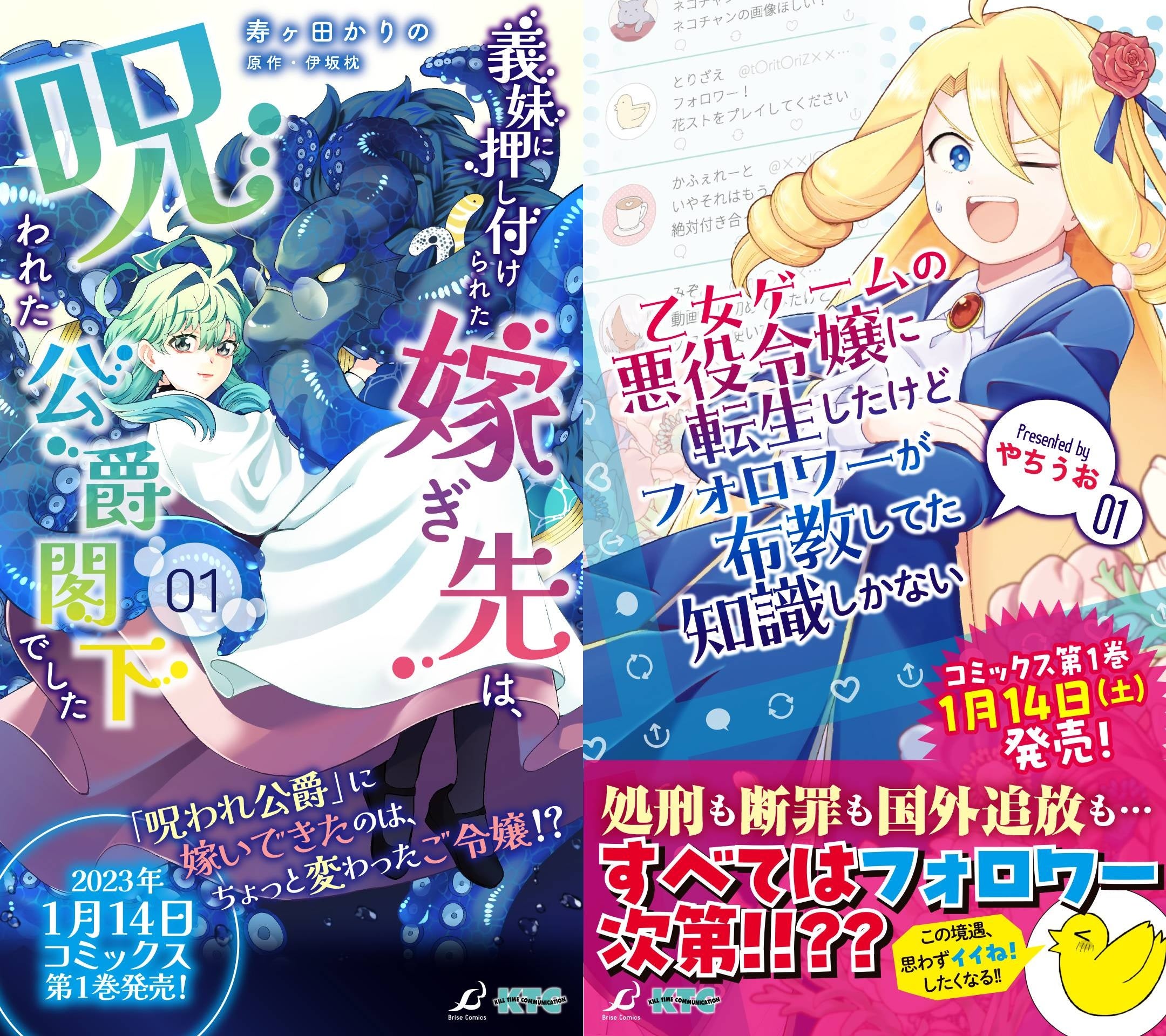 「ブリーゼコミックス」はキルタイムコミュニケーションが発⾏しているオトナ女子向けコミックレーベルです。「悪役令嬢」 「異世界転生」 「学園青春」「スポーツ」「コメディ」「癒やし系動物」「バディ・ブロマンス」など、多彩なラインナップで刊行中!