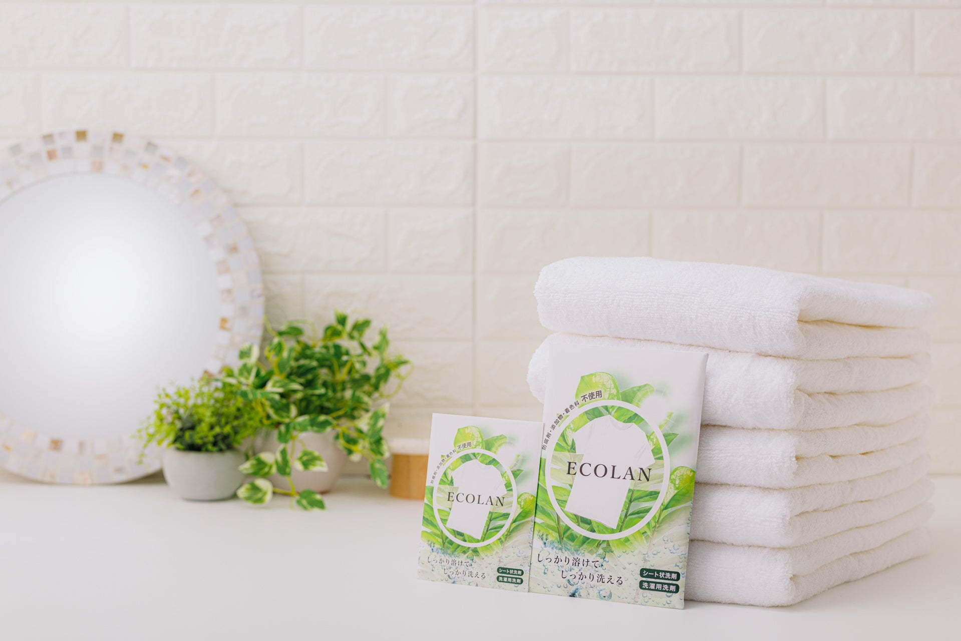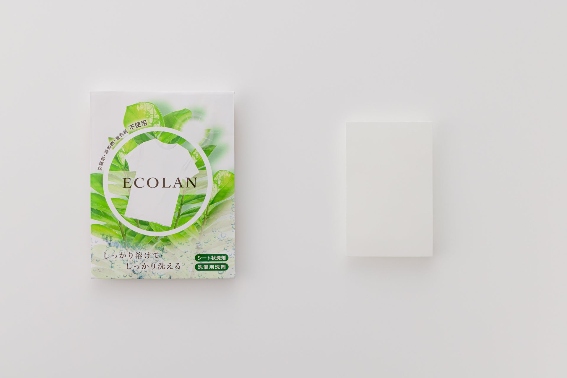 農産物を生産する上で出来るだけCO2を排出しないよう「環境に優しい農業」の取り組みを研究する中で生まれたのがシート状洗濯洗剤の「ECOLAN」です。