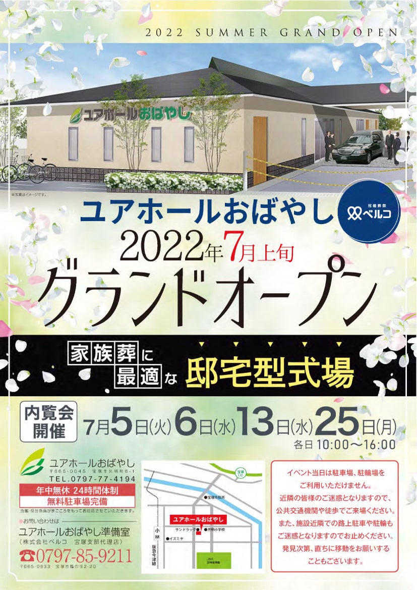 人生の二大行事である「冠婚葬祭」を、互助会という助け合い事業を通じて、お手伝いしてきた株式会社ベルコ(本社:大阪府池田市、代表取締役社長:齋藤 斎、以下「ベルコ」)は、2022年7月に阪急今里線小林駅周辺で初となる家族葬専用式場「ユアホールおばやし」をグランドオープンいたします。
