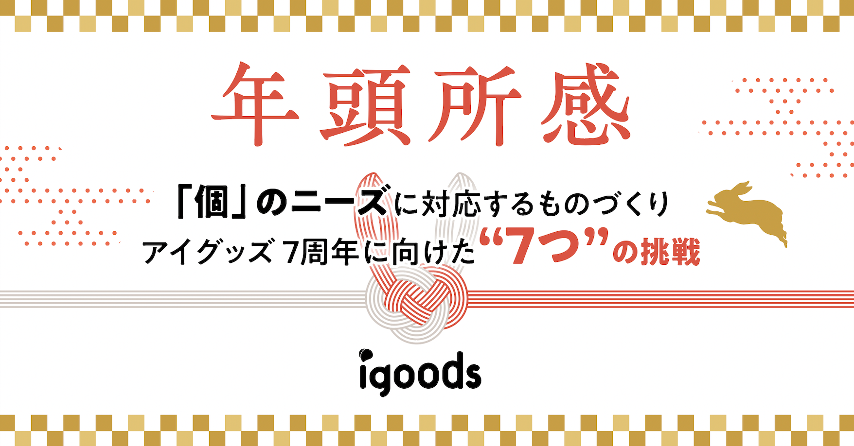 アイグッズ株式会社は、「あふれる愛で、想いをカタチに。」という理念を元に、「1000年成長し続ける会社をつくる」ビジョンを達成させることで、世の中に多くの価値を届けていきたいと考えています。創業以来変わらないこの想いを胸に、昨年はより社会の要請に合わせたものづくりを推進してまいりました。本年は、より各企業の「個」のニーズに合わせ、お客様それぞれのご要望によりお応えできるよう、7つの挑戦に取り組むことを宣言します。