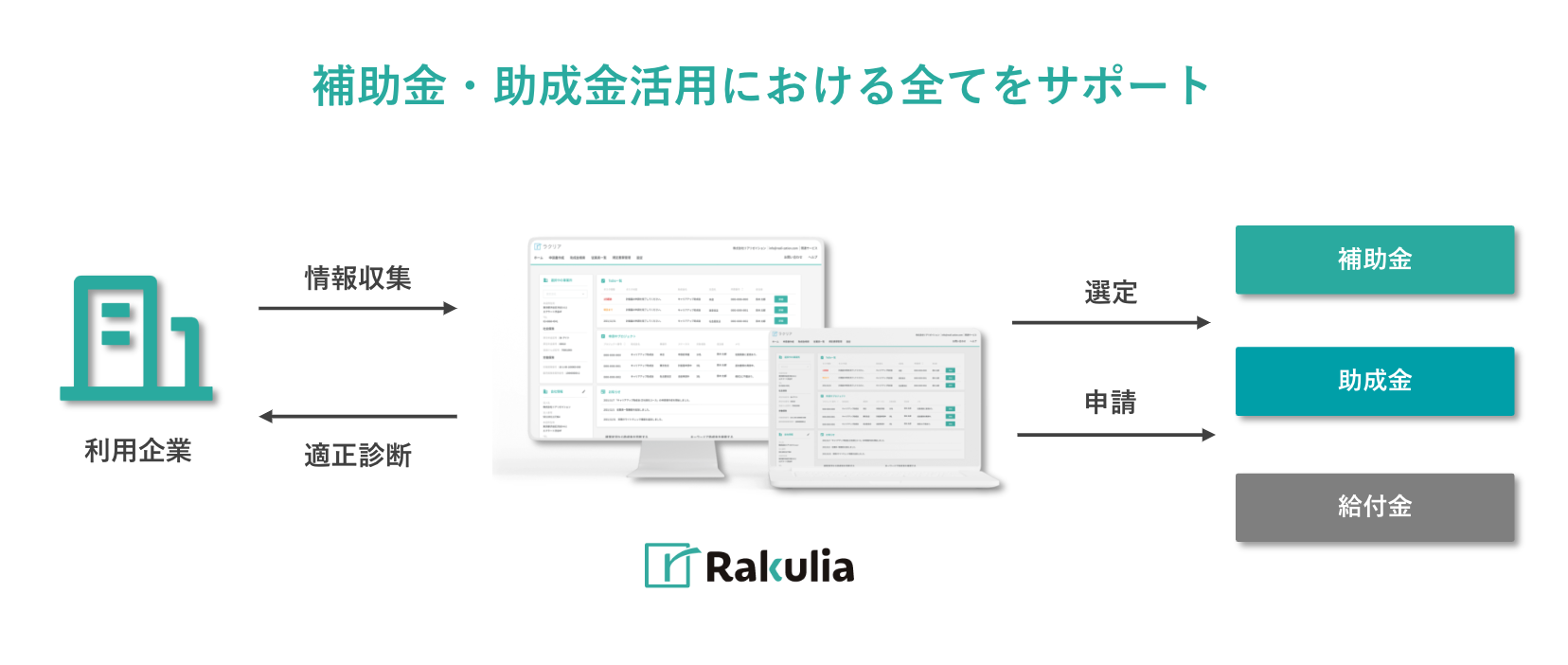 「ラクリア」はそんな助成金・補助金の「複雑」などの問題を、一気に解決!