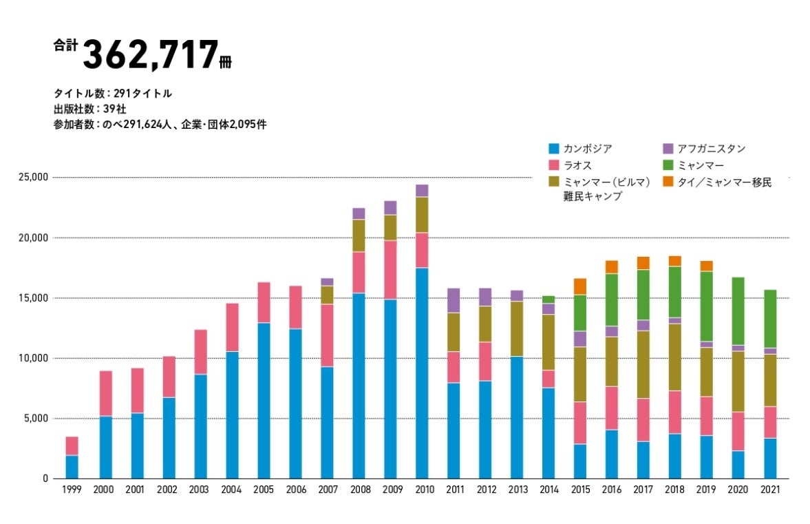 「絵本を届ける運動」は1999年からシャンティが開始した取り組みで、絵本が足りないアジアの国々へ、日本の絵本に現地の言葉に翻訳したシールを貼った「翻訳絵本」を届ける運動です。日本にいながら、おとなから子どもまで気軽に取り組める国際協力として、多くの個人・企業・団体にご参加いただき、2021年末時点でシャンティが活動地へ届けた翻訳絵本の数はのべ362,717冊になりました。これまでも参加いただいた皆さまから「知らない言語と触れる貴重な機会になった」「自分にできることは何か考える時間になった」といった声をいただくことがあり、「絵本を届ける運動」を通じてより世界や国際協力を身近に感じられる機会の創出や、異文化理解の促進を目指し、今回のリニューアルに至りました。