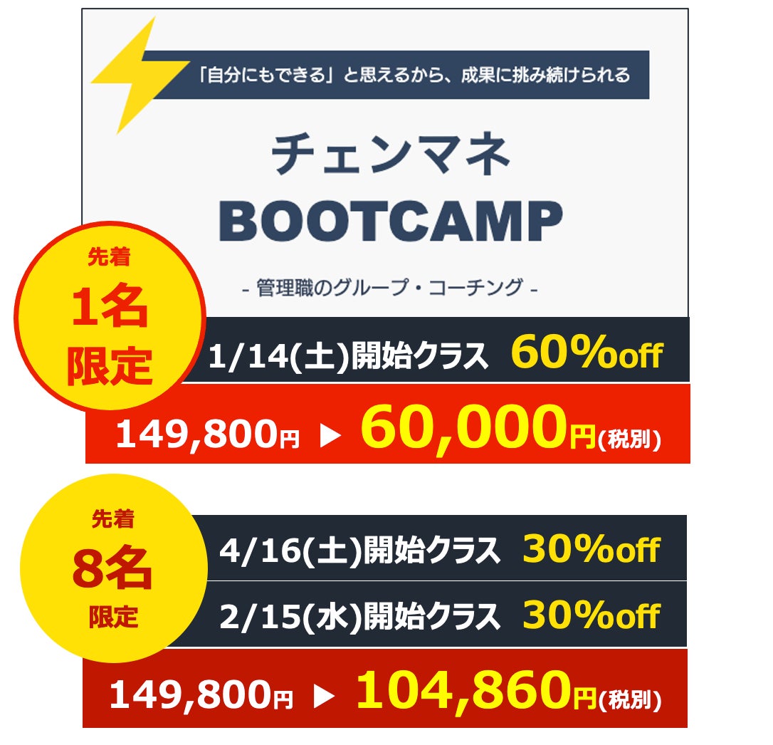 (チェンマネBOOTCAMP:1/14開始クラスをご希望のお客様は2023年1月11日(水)までのお支払いが対象です。)