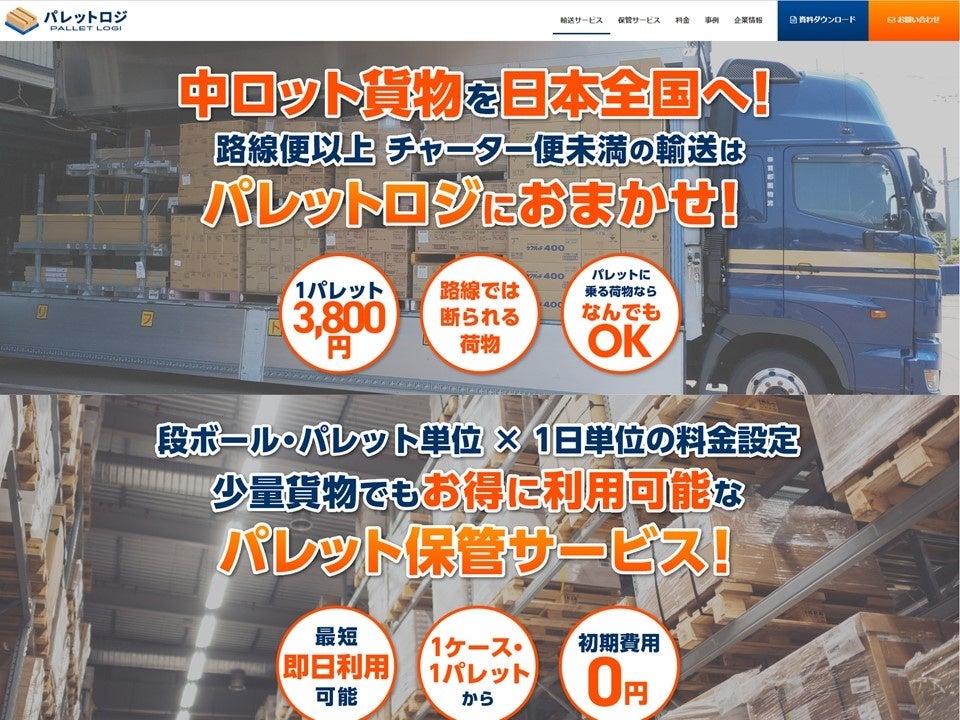 ■ パレット単位での輸送・保管サービス「パレットロジ」のサービスサイト
