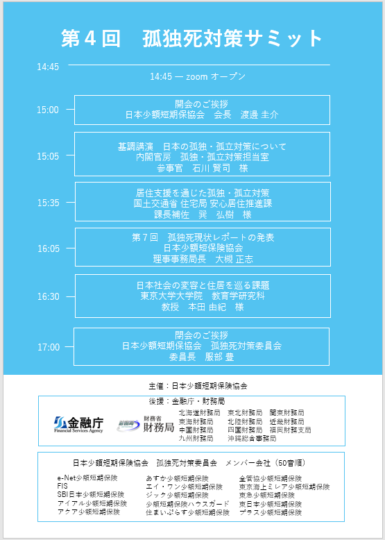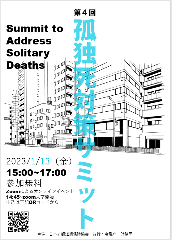 当協会では、孤独死の現状を多くの⽅に知って いただき、孤独・孤⽴そして孤独死を⾝近な 問題として考えるきっかけとしていただきたいという思いから「第4回 孤独死対策サミット」を1月13日に開催します。