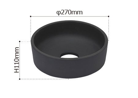熟練された匠の技でこそ生み出せる、陶器としては薄いエッジにより、現代の建築空間に調和するモダンな印象を高めています。また、内側の曲面は、底面中央に向かってわずかに傾斜をつけ、なめらかに仕上げることで水の溜まりを防いでいます。