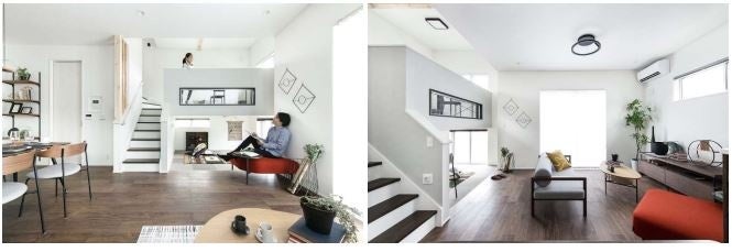 そのような地脈を活かして考案された物件コンセプトは、家族との絆・つながりを楽しむ家。縦の空間を活かしたスキッ プフロア下のフリースペースは隠れ家のような空間で、「自宅でアウトドア」を楽しむことが可能となります。屋外へとつな がる窓もあるので、自転車やサーフボード、キャンプ用品などを収納したり、メンテナンス作業をしたりできる空間ともなります。室内に施された国産の桐板壁と銘木突板フローリングの床が、家の中に居ながら自然の中で過ごす時間を感じさせ、住む人を癒してくれます。