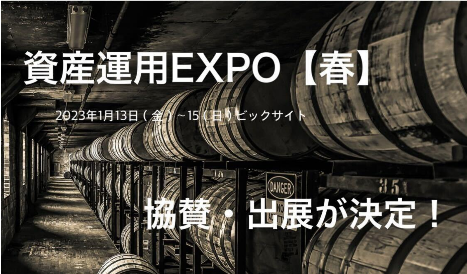 2023年1月13日(金)~15日(日)の3日間、資産運用EXPOにて投資商品としての「ウイスキーカスク」を紹介するブースを出展いたします。開催当日、ブースではウイスキーカスク投資について詳しく紹介するセミナーの開催やウイスキーカスクの販売会などを予定しております。
