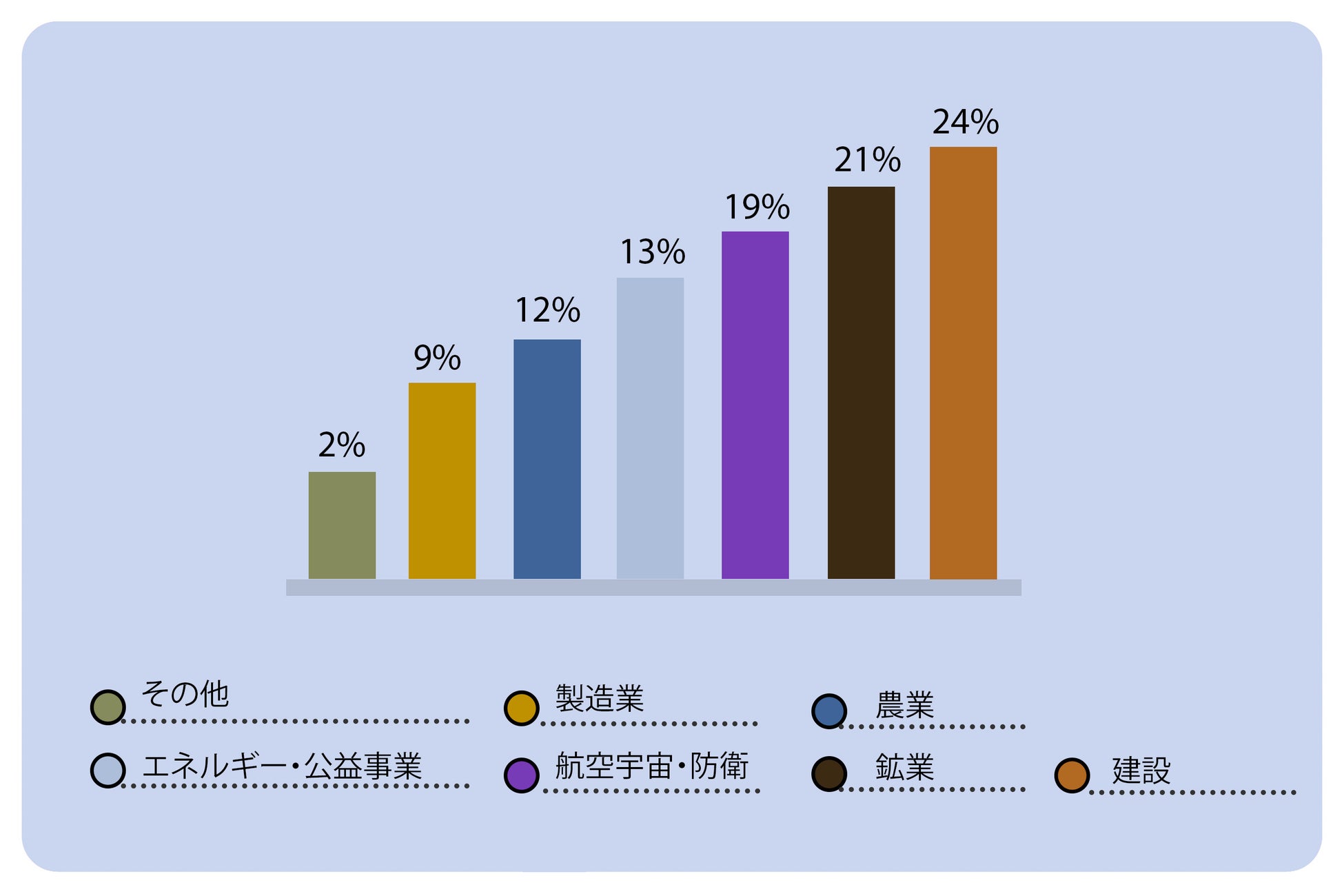 産業分野別では、農業、建設、鉱業、製造、エネルギー・公益事業、航空宇宙・防衛、その他に分類されます。