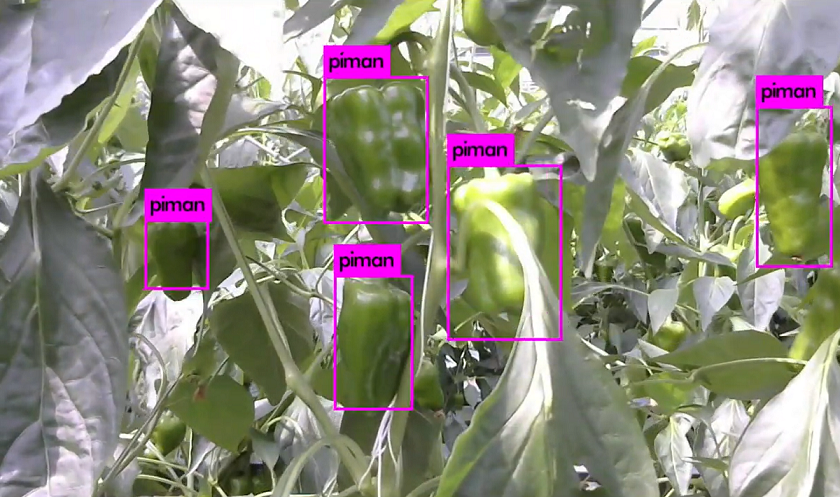 このたびGMOドリームウェーブが作成するAIの「教師データ」は、アグリストのピーマン自動収穫ロボット「L」に活用されます。ロボットが撮影した農作物の画像データをGMOドリームウェーブが取得し果実や果柄を矩形で囲うことで、季節や地域によって、色や形が異なる作物の数多くのデータを「教師データ」として蓄積します。このデータをAIロボットに学習させることで、さらに効率よく自動収穫できるようになります。