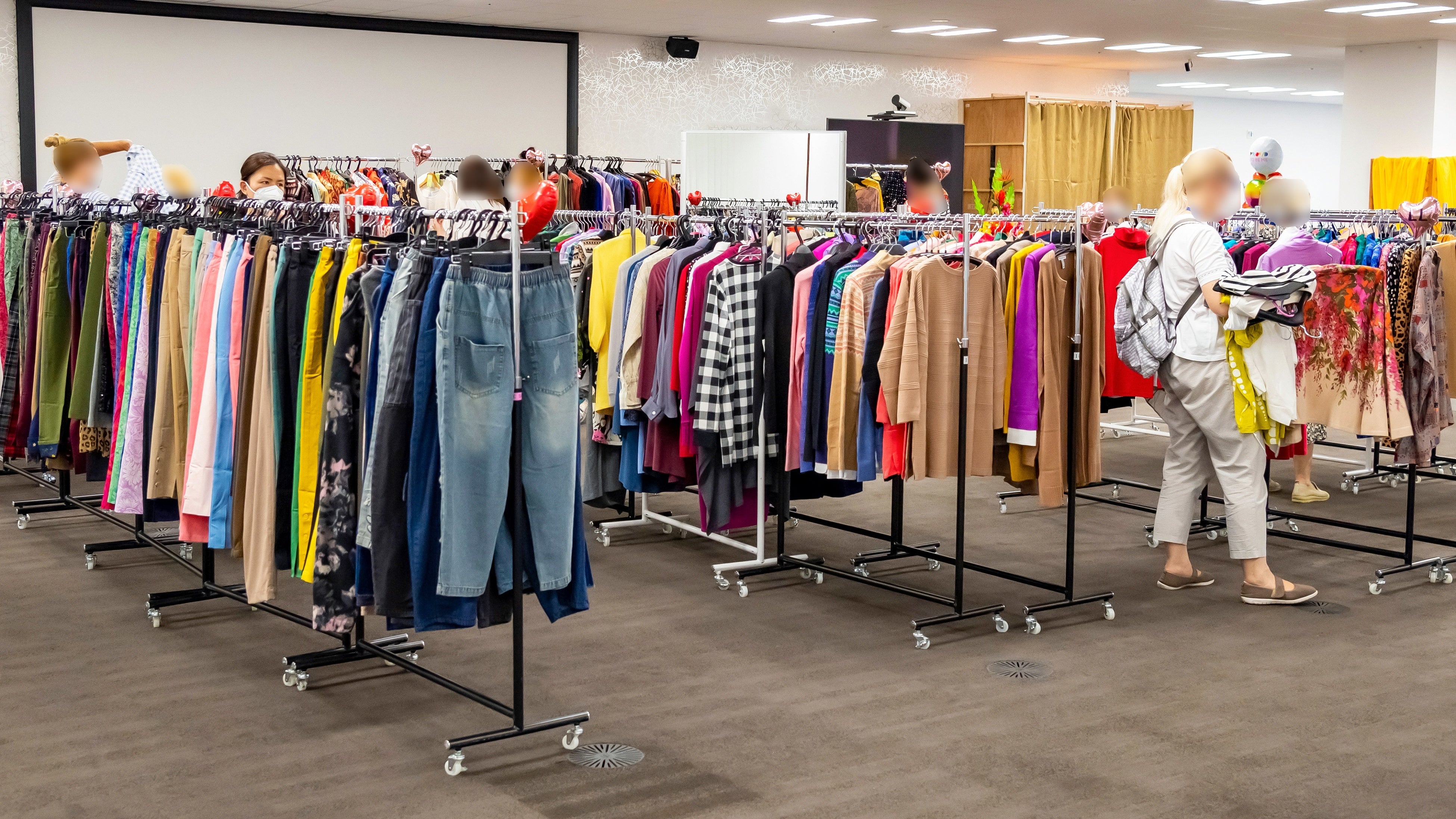千葉市役所を通じて避難民の方々の需用をヒアリングしたところ、ウクライナより着の身着のまま避難されてきたため、衣服が不足していることがわかりました。ただ単に寄付するのではなく、当社が大切にしている「ショッピングの楽しさ」を感じていただくため、当社オフィスに寄付候補のアパレルおよびその他雑貨を陳列し、実際に避難民の方々に物品を手に取って選んでいただいたものを寄付いたしました。また、寄付会場には避難民の方々が時間を気にせず物品を見られるように、お子様が遊べるキッズスペースや、物品をお試しいただく試着室を用意いたしました。