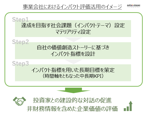 インパクト評価により客観的数値で測れるようになることで、実証実験中のイノベーションや、短期的には業績に直結しない取り組みについても評価が可能となってきます。それが企業価値として反映されることで、本来の実力を投資家にアピールすることができ、ひいては日本企業全体の競争力向上につながるものと考えています。