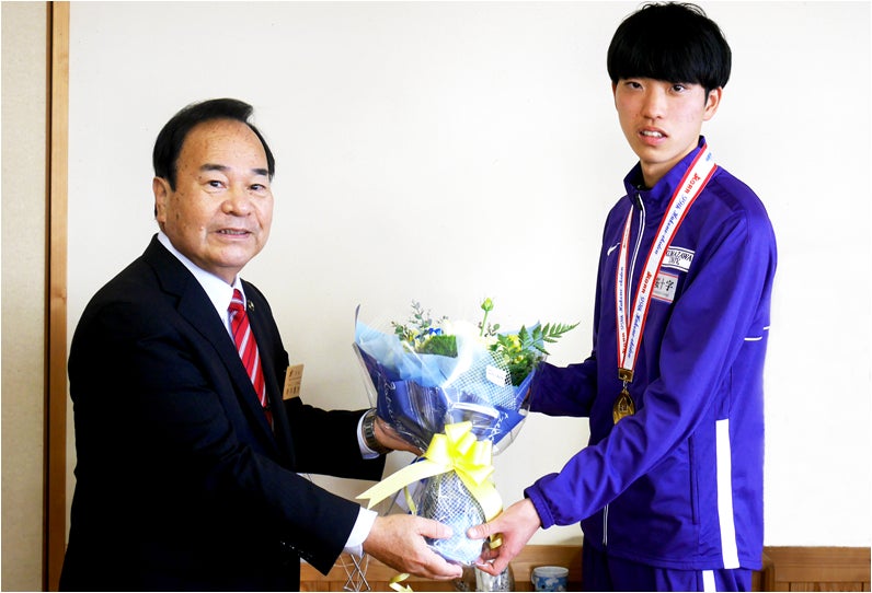 10区を区間第2位の記録で好走した青柿響選手が1月6日(金)、飯能市役所へ来訪され