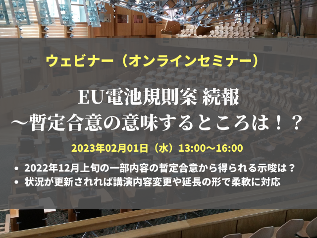 ■ タイトル|「ウェビナー|EU電池規則案 続報~暫定合意の意味するところは!?」