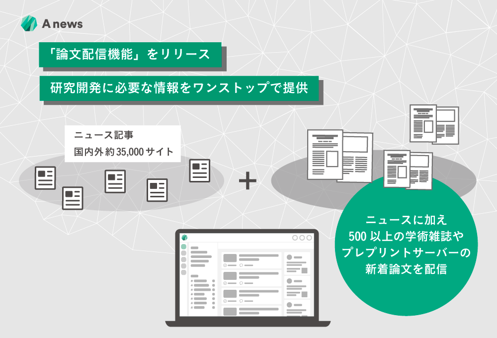 業務に必要な論文を確認する作業は、各論文掲載サイトを跨いで検索する必要があり、日々大量の論文が公開される中では、タイムリーに自身の業務に関連する論文を発見し、活用することは多くの技術者の悩みの種となっていました。