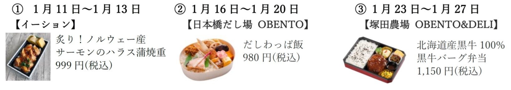 今回の実証実験では週替わりで「エキュート品川」で取り扱っているお弁当を配送します。