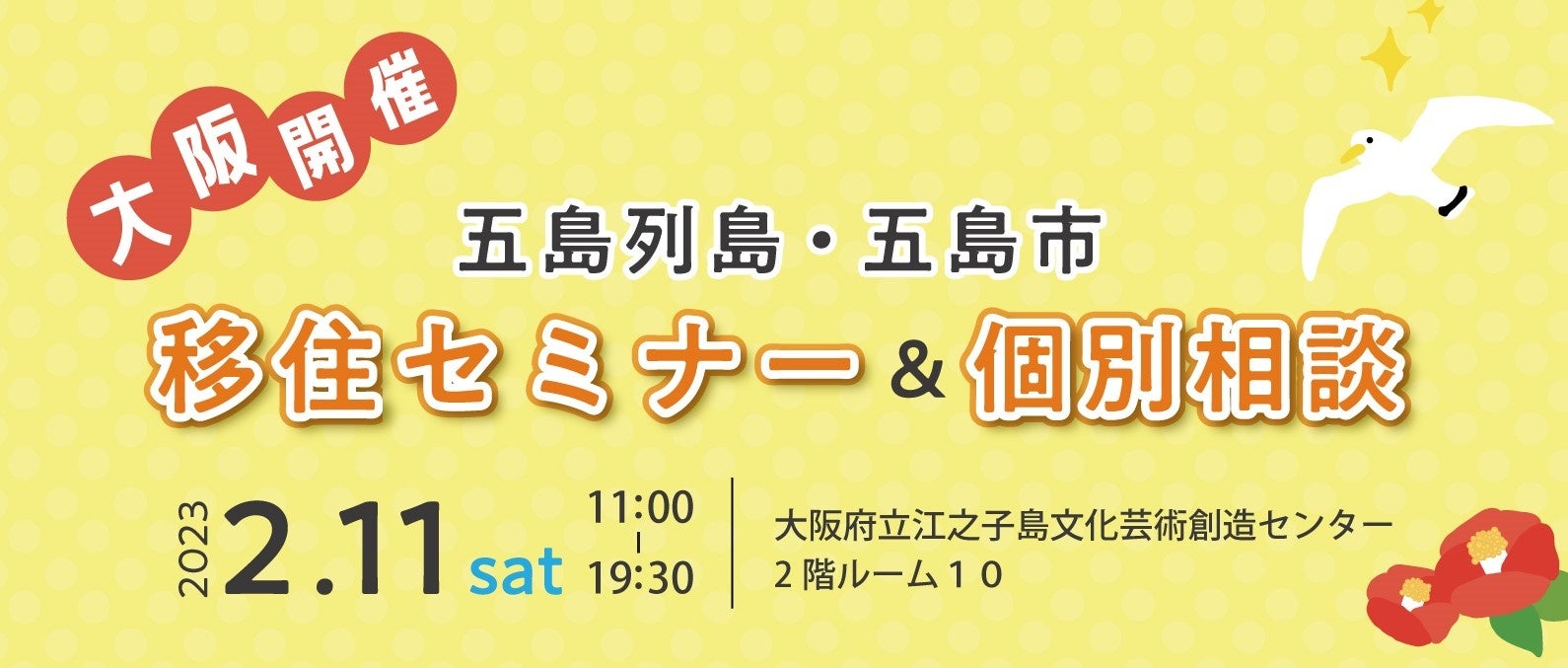 五島市は、2023年2月11日(土)に『移住セミナー(個別移住相談)』を開催。翌2月12日(土)は『九州・山口合同移住相談会』に参加します。