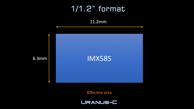 Uranus-Cには、最新のSTARVIS 2テクノロジーを採用した裏面照射型のSONY製IMX585センサーが搭載されています。大型の1/1.2型フォーマットで一度に広い範囲を撮影するのに適しており、1ピクセル四方は2.9μm、約840万画素の高精細な画像が得られます。近赤外線にも高い感度を持っているため、様々なフィルターワークに対応し、天体撮影や電視観望の幅を広げることができます。電視観望や月、惑星撮影に特に適したセンサーです。