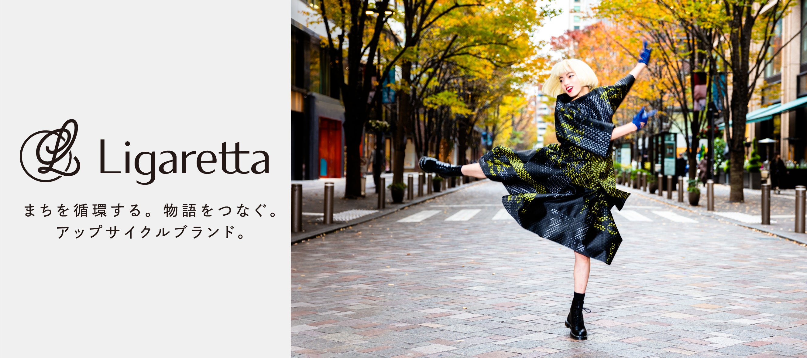 「Ligaretta(リガレッタ )」は、NPO法人 大丸有エリアマネジメント協会の法人設立20周年を記念し、大手町・ 丸の内・有楽町エリアにおいて掲出されたバナーフラッグやイベントで使用した什器などの‟まち”での役割を終えたものを再生し、新たにまちへと循環させることを目的としたアップサイクルレーベルです。