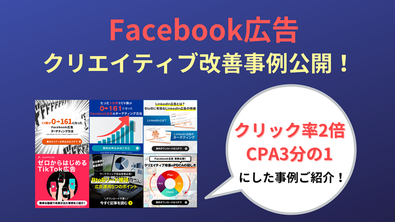 - 4ヶ月でクリック率2倍、CPA3分の1に! Facebook広告クリエイティブ改善のポイントを事例で徹底解説!