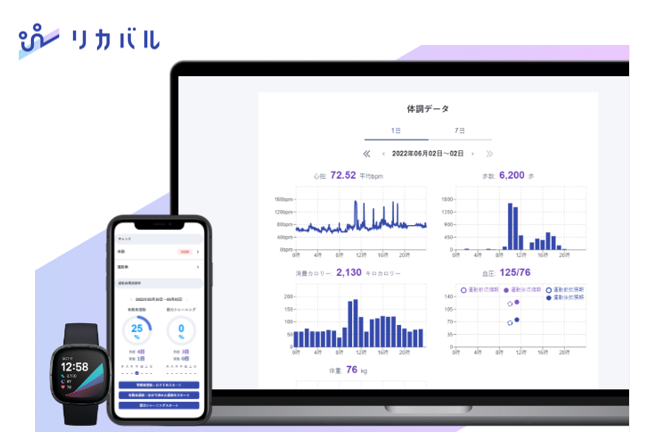 「リカバル」(https://recoval.jp/)は、スマートウォッチと独自のウェブシステムで、遠隔で運動実施状況を可視化しながら、心臓リハビリテーション指導士(以下、「心臓リハビリ指導士」)の指導の下、在宅での運動を支援するプログラムです。