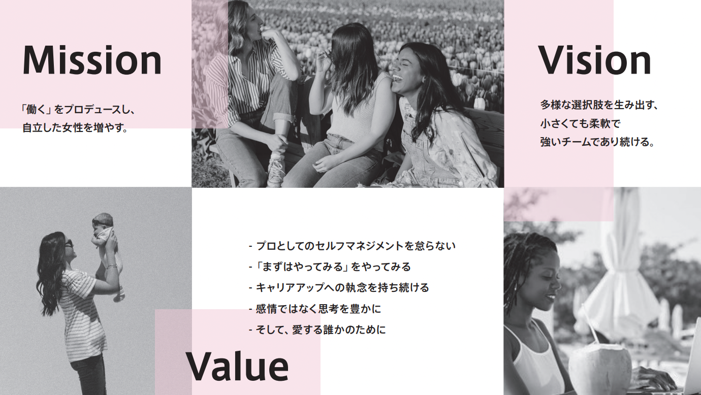私たちは、それぞれの「働き方」をプロデュースして、自立した女性を増やしたいと本気で思っている。