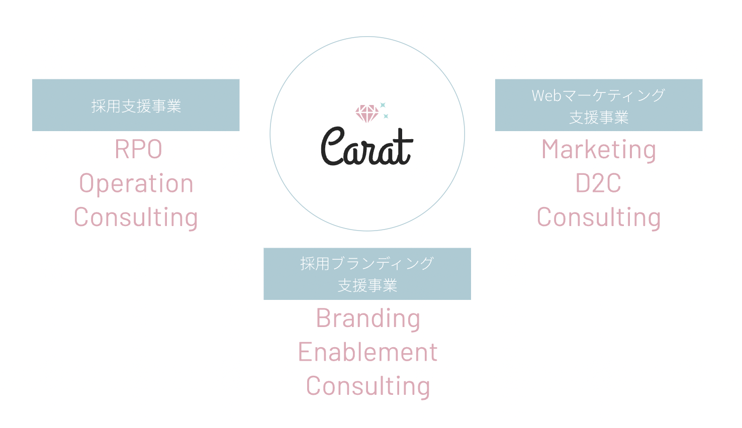 採用ブランディングの戦略・運営サービス“Carat-Branding”・人事チームの組織体制構築サービス“Carat-Enablement”を展開。長期的なブランディング形成や強固な仕組みづくりを実現します。