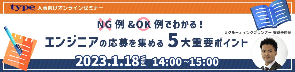 【1月18日開催】NG例&OK例でわかる!エンジニアの応募を集める5大重要ポイント/type人事向けオンラインセミナー