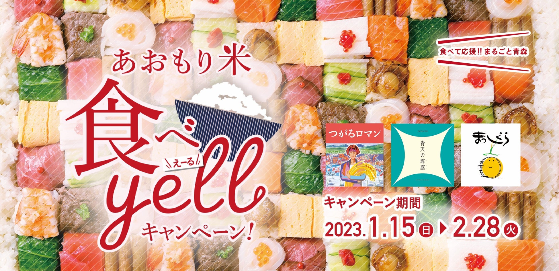 青森県産米「青天の霹靂」「つがるロマン」「まっしぐら」を対象とした『あおもり米食べyellキャンペーン』を実施いたします。