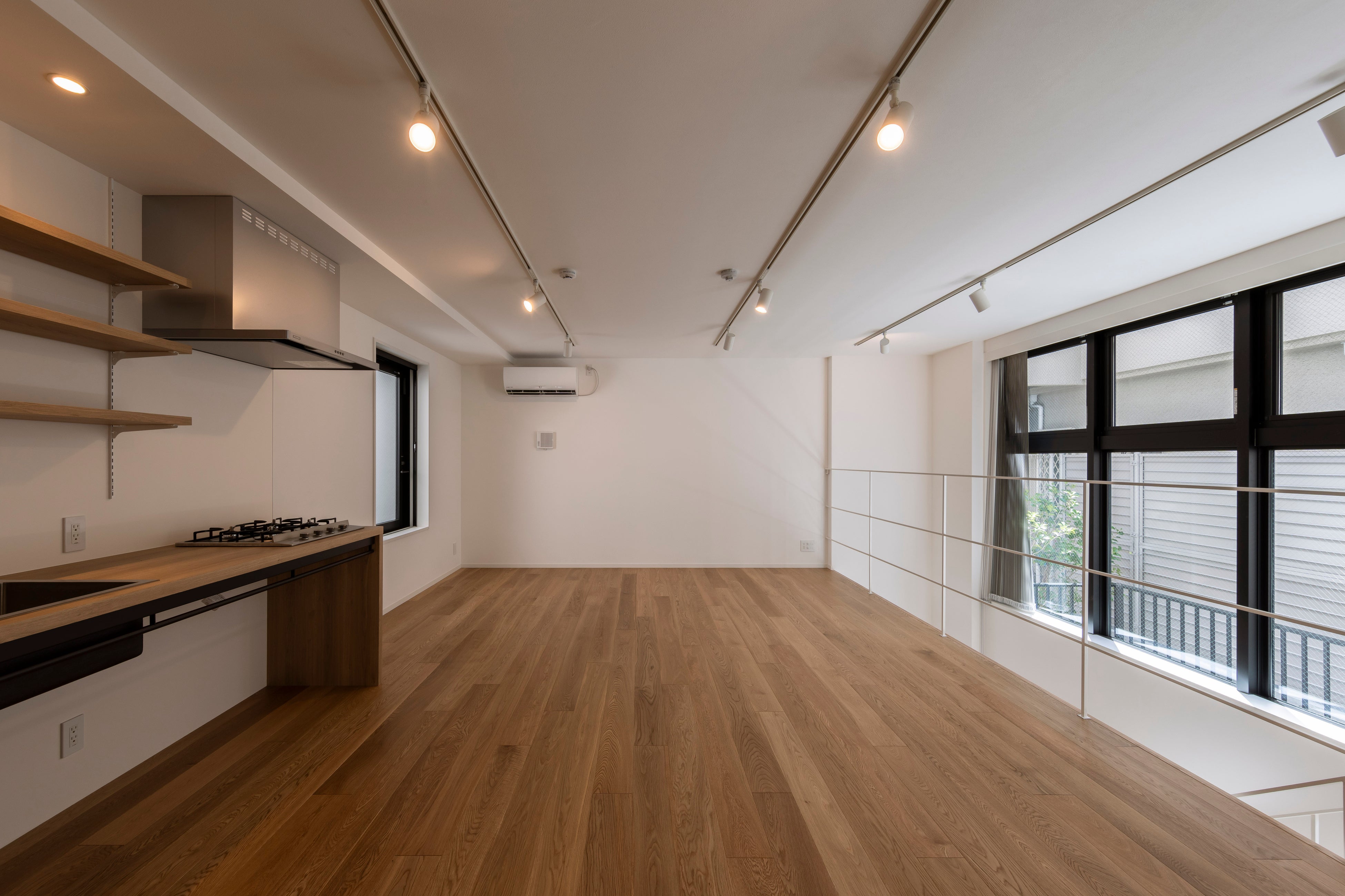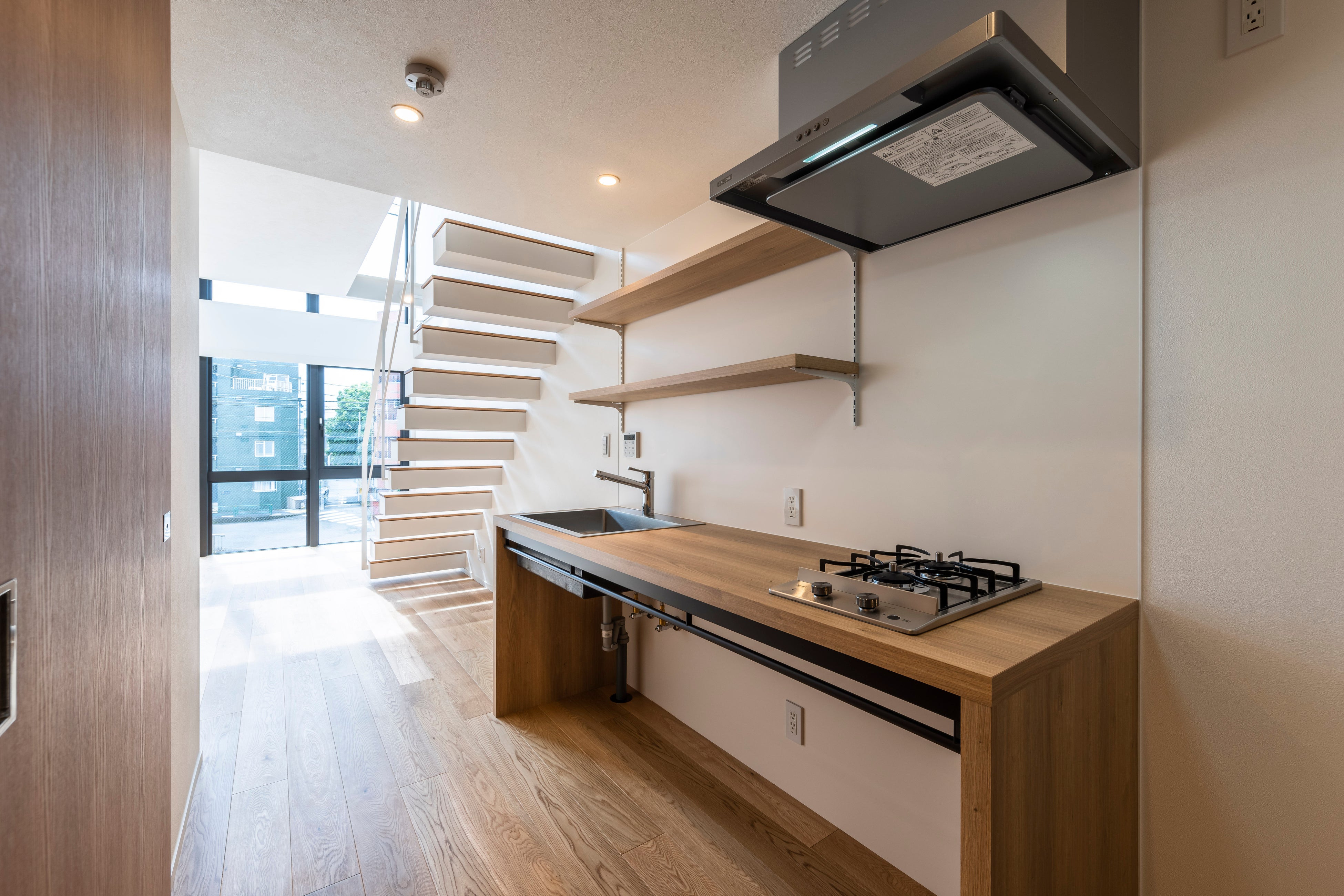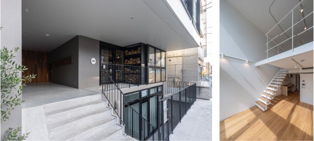 SOHO は全5室。屋上の開放感を最大限に生かした専用の屋上テラス付きのメゾネット3室は、大きな窓と吹き抜け空間で空と自然光に満たされる空間です(53.38㎡〜56.12㎡)。1階から地下のメゾネット(72.47㎡)には大きな窓と2カ所のドライエリアを設けて、光や風が通るように。ワンルームタイプも天井高を高くとり、広々と感じられる空間に仕上げました(35.10㎡)。※SOHOは現在満室となっています。