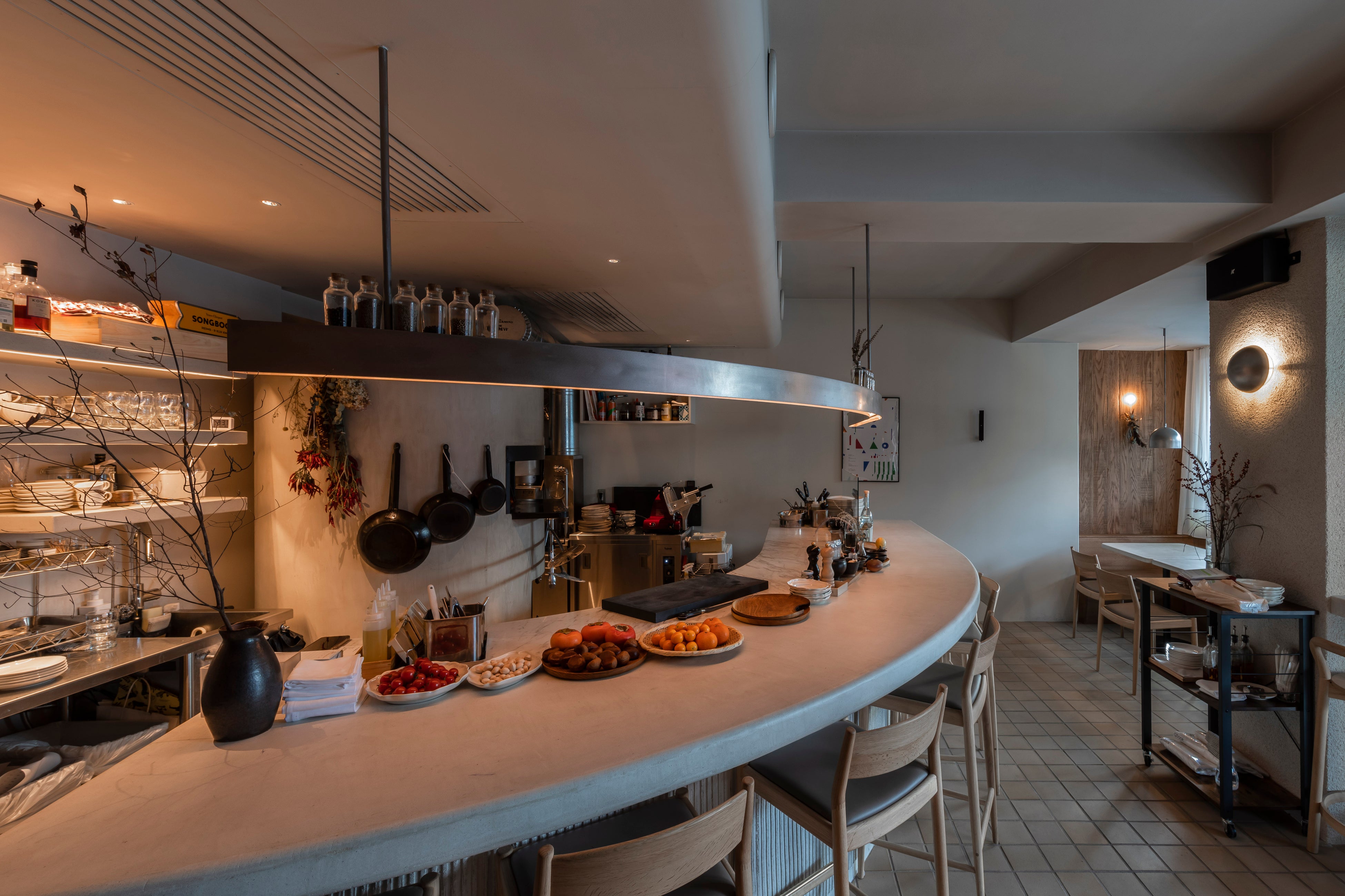 入居店舗や入居者を探していくにあたっては「施設コンセプトに共感してくれる方」を重視し、コンセプトを伝えるための施設ブランディングおよびコミュニケーションツールのデザインもUDSにて行いました。リーシングは「田んぼを耕すようにまちを耕す」ことをコンセプトに空き家再生とまちづくりに取り組むomusubi不動産が担当し、1階にイノベーティブフレンチ「Neki」のシェフ西恭平氏が手がける薪火レストラン「songbook」、地下1階にバーテンダー野村空人氏がプロデュースするカクテル・バー&スタジオ 「Quarter Room」が開業。SOHO区画にも施設コンセプトや世田谷代田のまちに魅力を感じていただいた方々の入居が決まっています。
