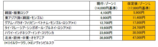 運賃額 : 日本発旅程 (金額はお一人さま一区間片道あたり)