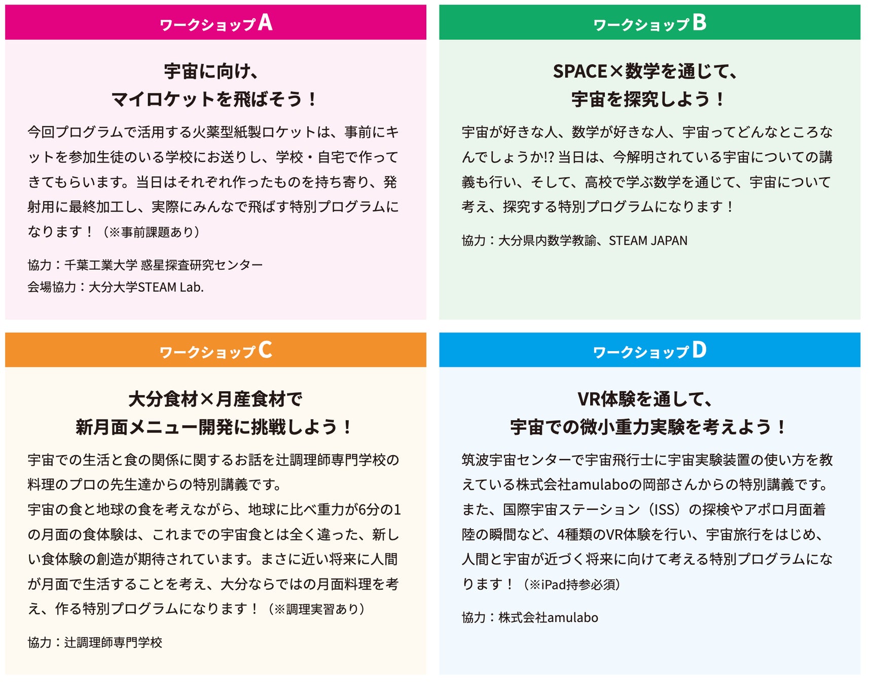 今回、大分県内のおよそ200名の高校生を対象に、宇宙産業で活躍するトップランナーによる講演や専門機関と連携したSTEAM教育が体感できるワークショップを実施します。一般視聴ができますので、興味のある方はお誘い合わせの上、ご参加ください。