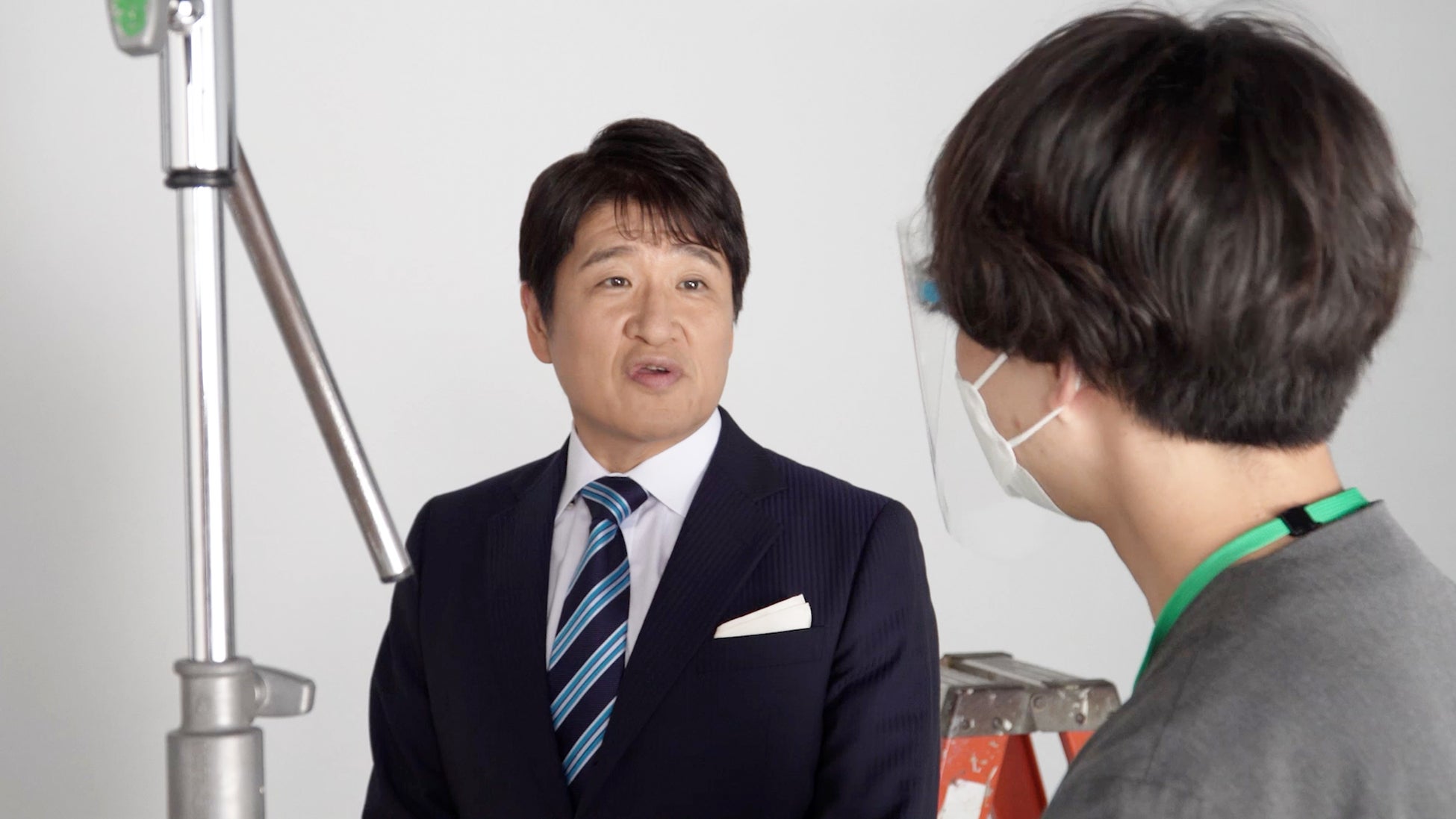その後、林修さんが無言のまま表情だけで演技をするシーンの撮影に。「いや、ここ“うち”なんだけど」という冷静な返答を受けて、「困惑」や「悲しみ」の感情を表現する演技が求められました。そして、監督の演技指導も受けて撮影に挑んだ林修さん。見事、表情だけの演技をやり遂げカットがかかると、スタジオ内のスタッフからも感嘆の声が。