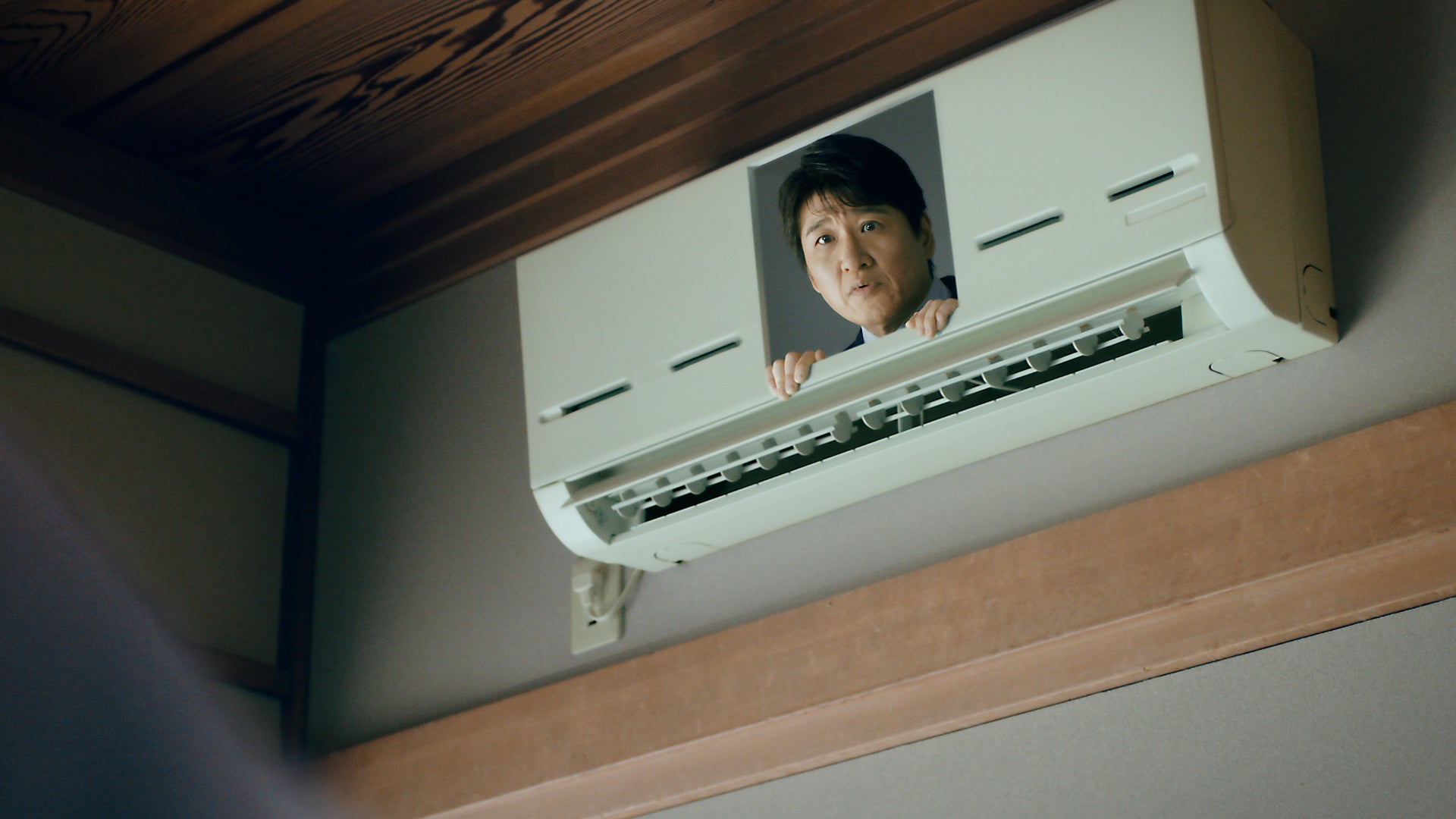 再度、画面は部屋のシーンに。林修さんは「この夏、電力不足に備えて、HTTでしょ!」と呼びかけ、CMの最後までエアコンの中から訴えかけるのでした。