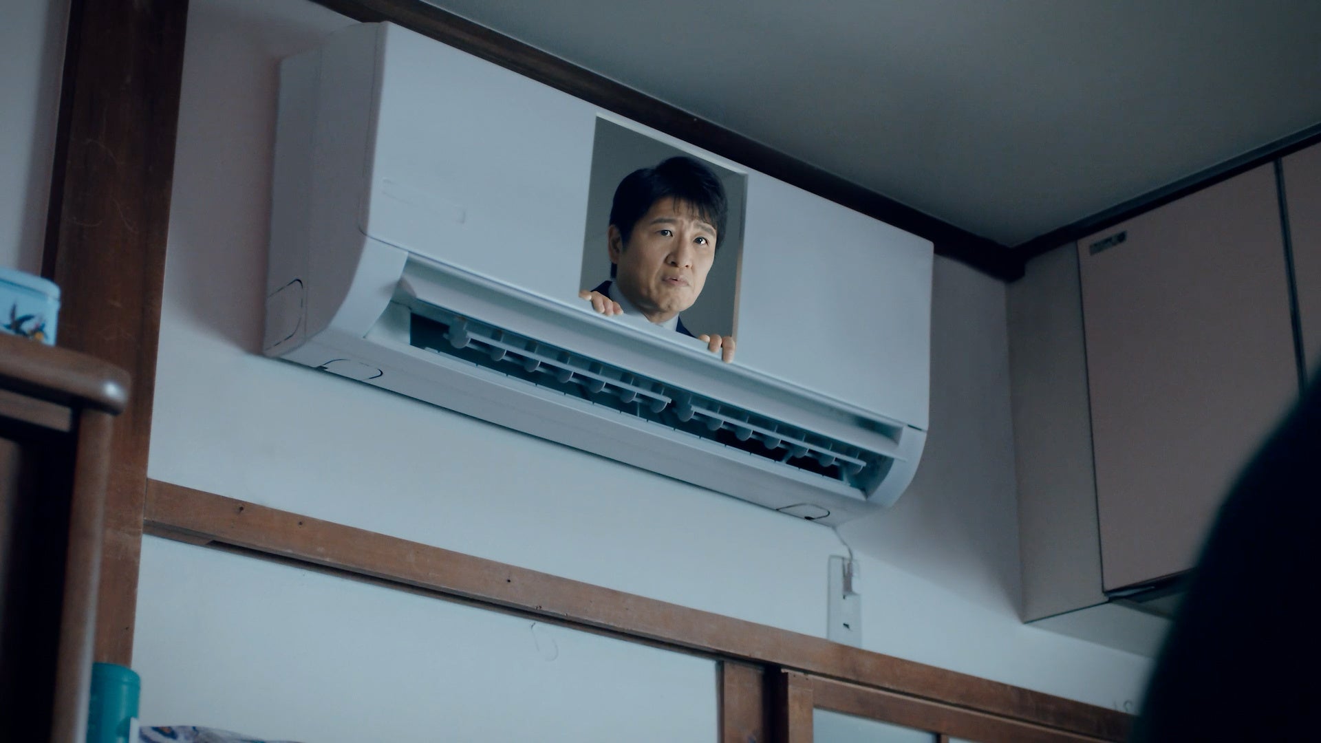 再度、画面は部屋のシーンに。林修さんは「この夏、電力不足に備えて、HTTでしょ!」と呼びかけ、CMの最後までエアコンの中から訴えかけるのでした。