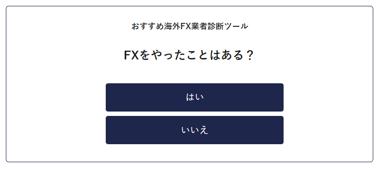 当ツールでは、投資の知識・海外FXの知識が無い方でも1分程度で海外FX業者の診断ができます。