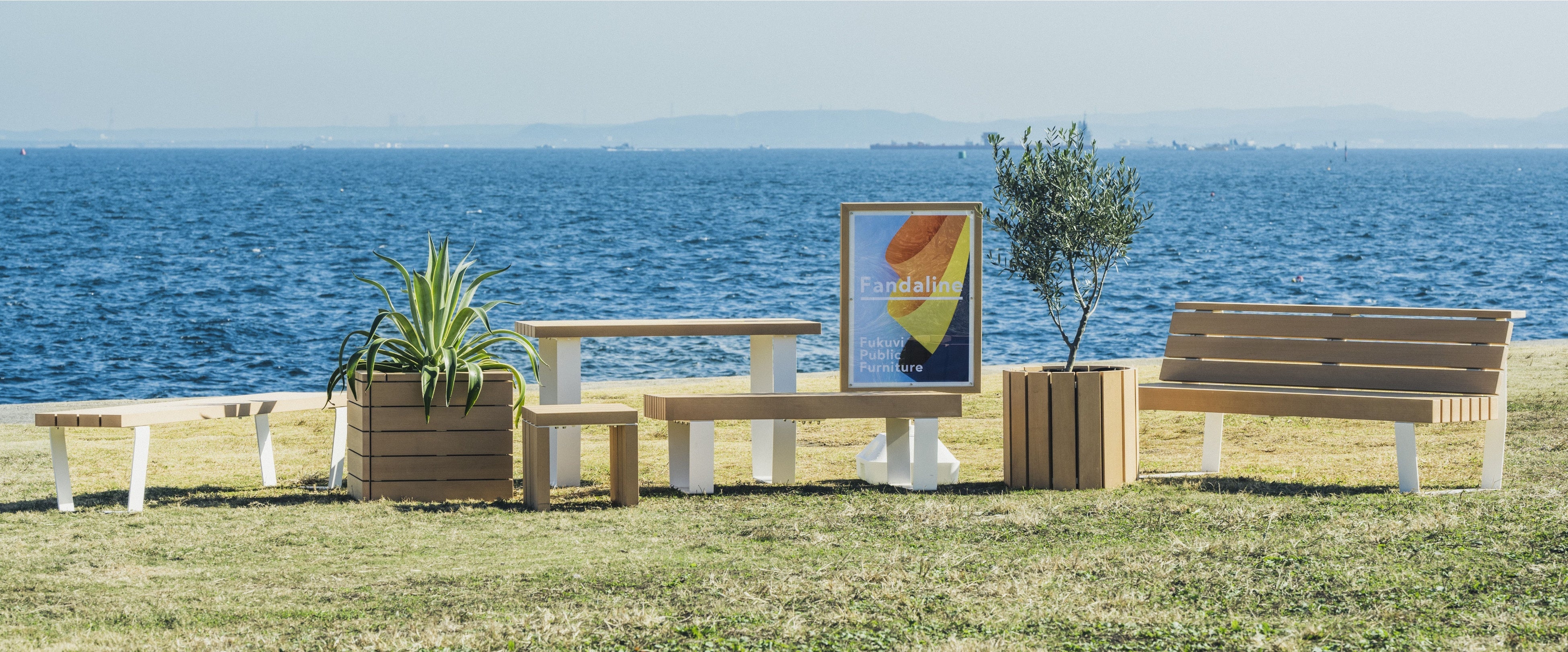 「ファンダライン」は、自然と人々を迎えいれてくれる普遍的でやさしいデザインを心掛け、大きな広場から建物の軒先まで、さまざまな「まちの1階」に人が自由にいられる場所を提供することを目標にした新しい屋外家具ブランドシリーズです。