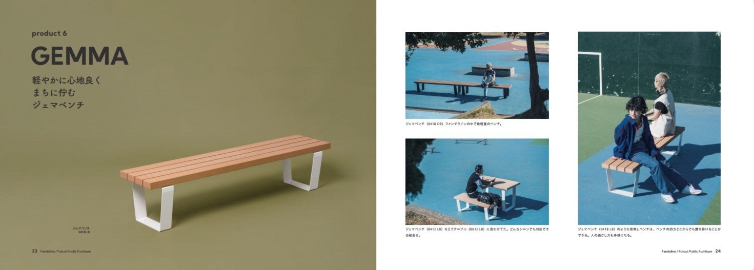 既存ベンチよりも座面の奥行を少し狭くして、どんな場所にも馴染みやすい「ジェマベンチ」
