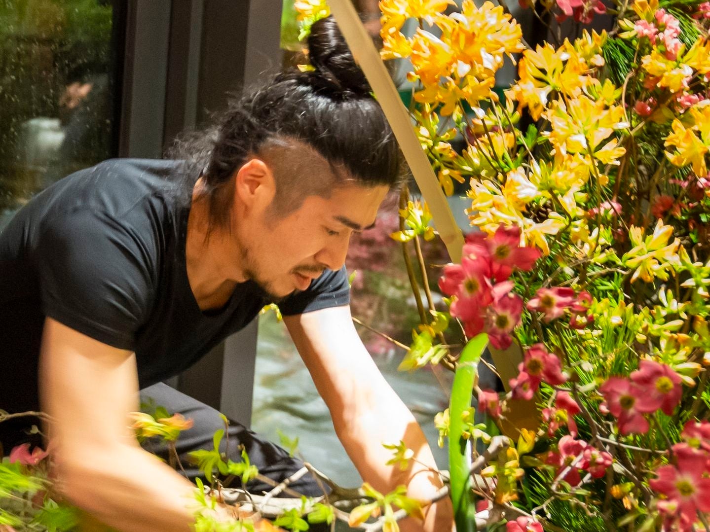 世界各国でいけばなの制作助手を務め、数多くのホテル、オフィス、TV等のデザイン、装飾制作を手掛けるいけばなパフォーマンス集団「座・草月」のメンバーとしても活躍。