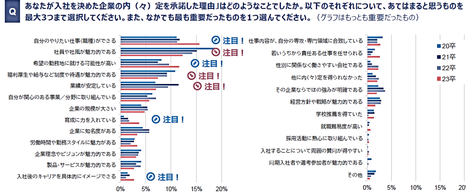 仕事内容や勤務地といった明確で比較可能な情報が意思決定の材料として重視されるようになったと考
