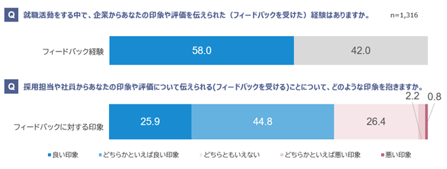 ・就職活動をする中で、企業から フィードバックを受けた 経験 のある学生は 58.6%。