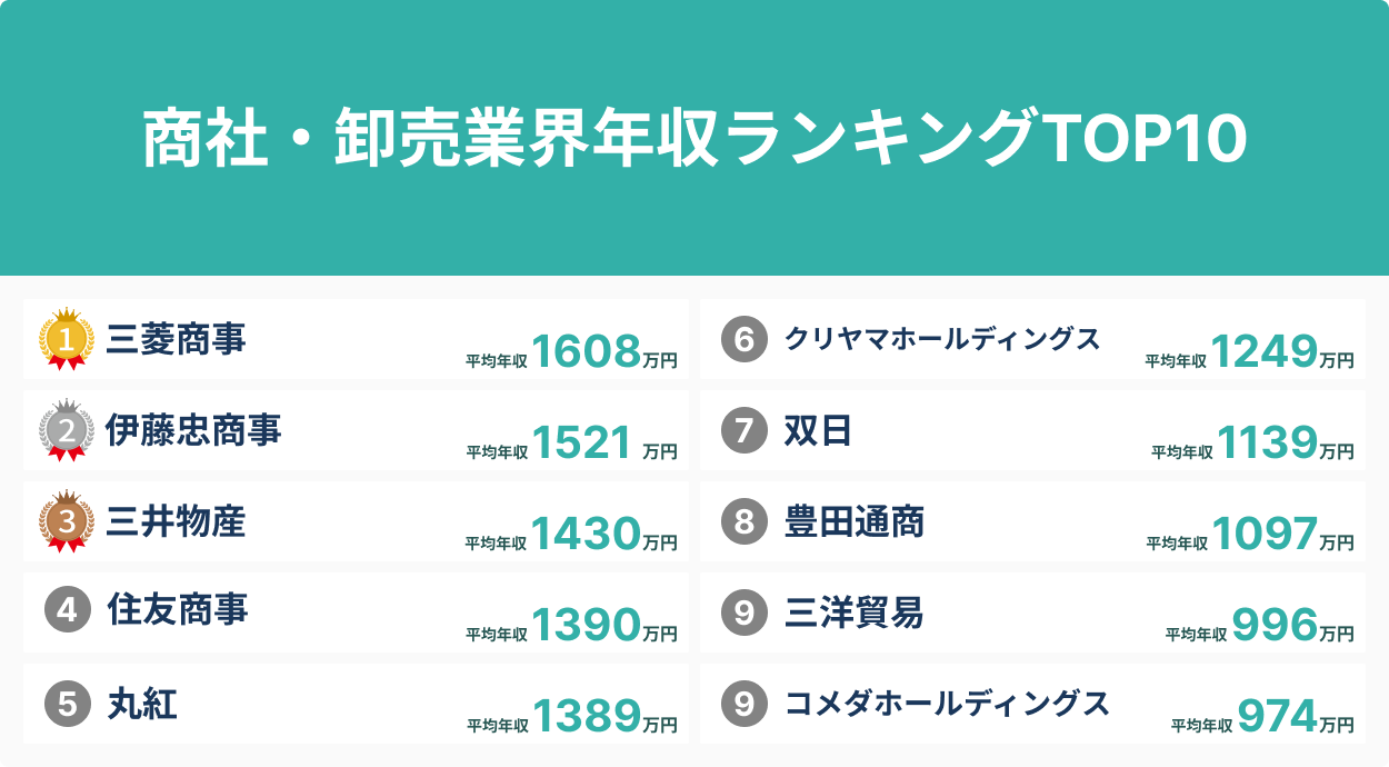 日本最大級のデータベースを誇る「SalesNow DB」において、上場企業に絞り、商社・卸売業界における年収ランキングについて調査しました。