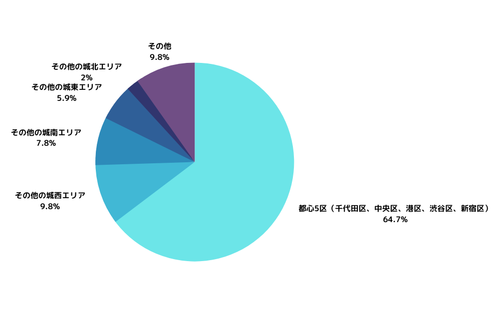 最も多かった回答は「都心5区(64.7%)」、以降「その他の城西エリア(9.8%)」、「その他の城南エリア(7.8%)」「その他の城東エリア(5.9%)」「その他の城北エリア(2%)」と続く結果になりました。