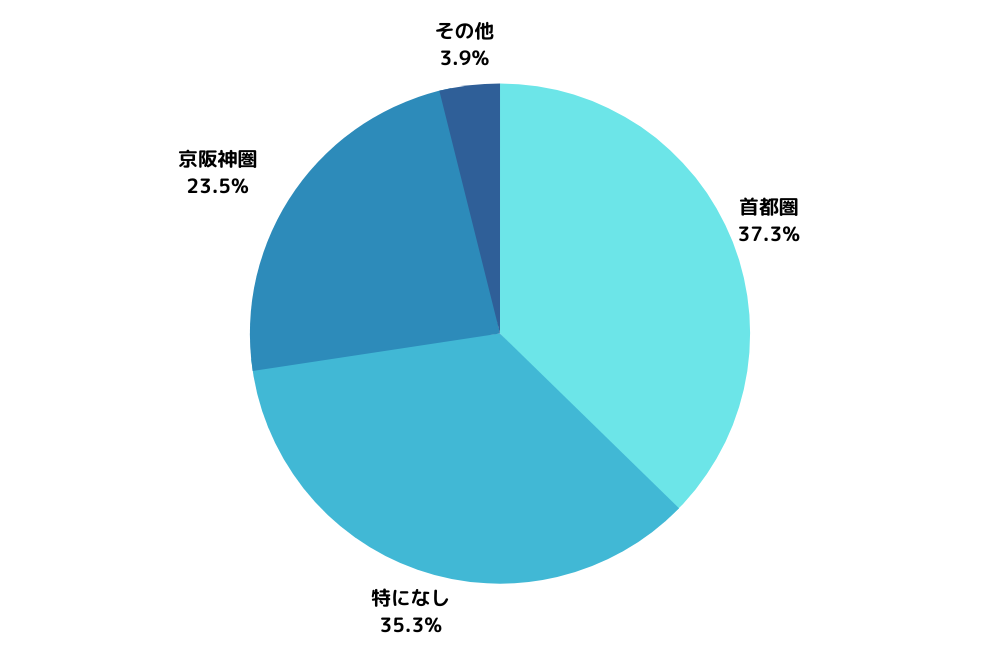 「首都圏」という回答が37.3%と一番多く、僅差で「特になし」という回答が35.3%、以降「京阪神圏(23.5%)」と続く結果になりました。