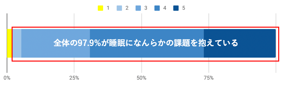 1. 全体の約98%が、睡眠に対してなんらかの課題を抱えている結果に