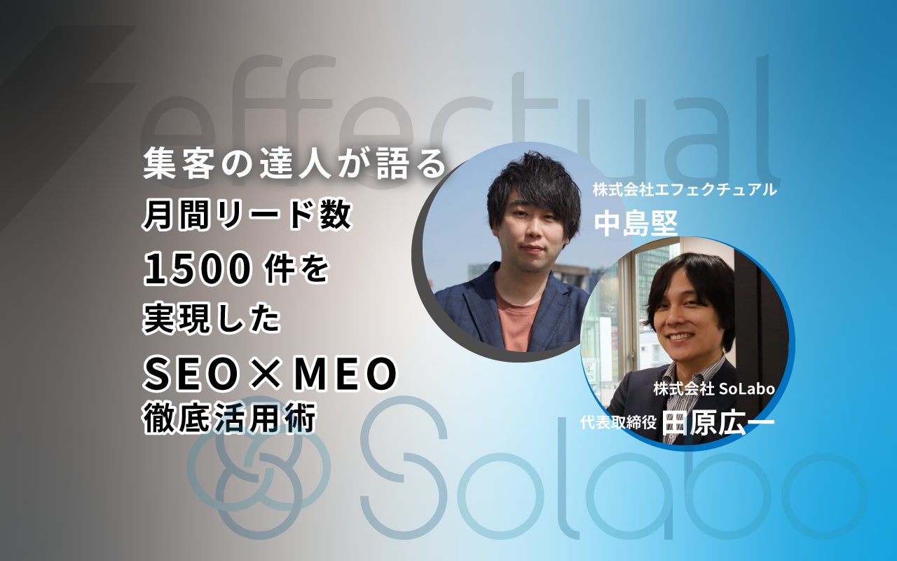 そこで今回の共催ウェビナーでは、両社のSEO、MEO施策において月間リード数 1,500件の実績を誇る集客の達人2名による「SEO×MEO活用術」を徹底的に解説いたします。